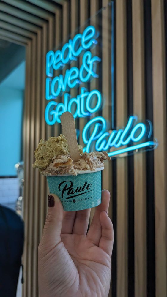 Introducing Paulo Gelato & Chocolate: Located in Chicago, this gelato and chocolate brand offers a variety of flavors, including Burnt Butter Vanilla, Paulo Chocolate 75%, Pistachio, and Fresh Mint & Chocolate. They also have classic options like Fior Di Latte, Straciatella, and Cookies & Cream, as well as dairy-free choices such as Chocolate, Chocolate & Strawberry, and Vitamin Power. Customers rave about the quality and taste of the gelato, with favorites like pistachio, strawberry basil, and burnt butter vanilla. The small patio seating allows for a cozy environment to enjoy your sweet treat. While some may find the prices a bit high, the delicious flavors and friendly service make it a worthwhile stop for gelato lovers. Overall, Paulo Gelato & Chocolate stands out for its unique flavors, creamy texture, and genuine Italian gelato experience.